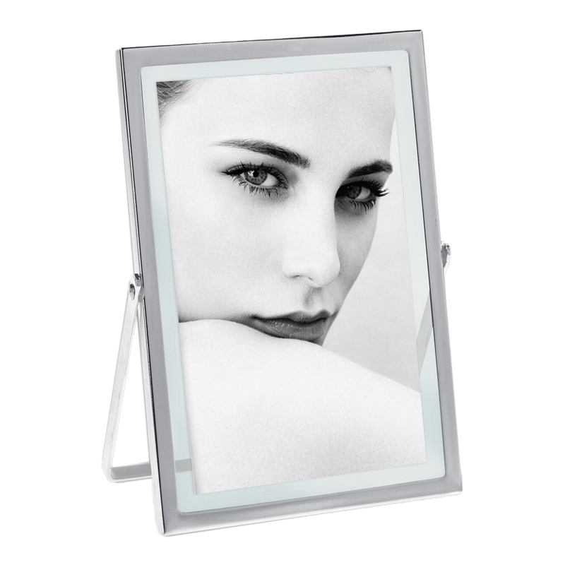 Cadre photo articulé avec pied argenté, au design sobre et contemporain. Idéal pour mettre en valeur vos souvenirs, il s’intègre facilement à tous les intérieurs grâce à sa finition argent raffinée. Peut être posé en toute stabilité sur un meuble, une étagère ou un bureau.