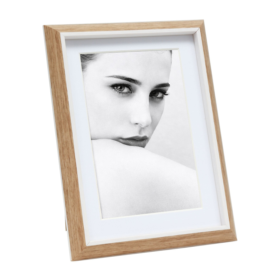 Cadre photo en couleur bois avec biseau blanc et passe-partout
